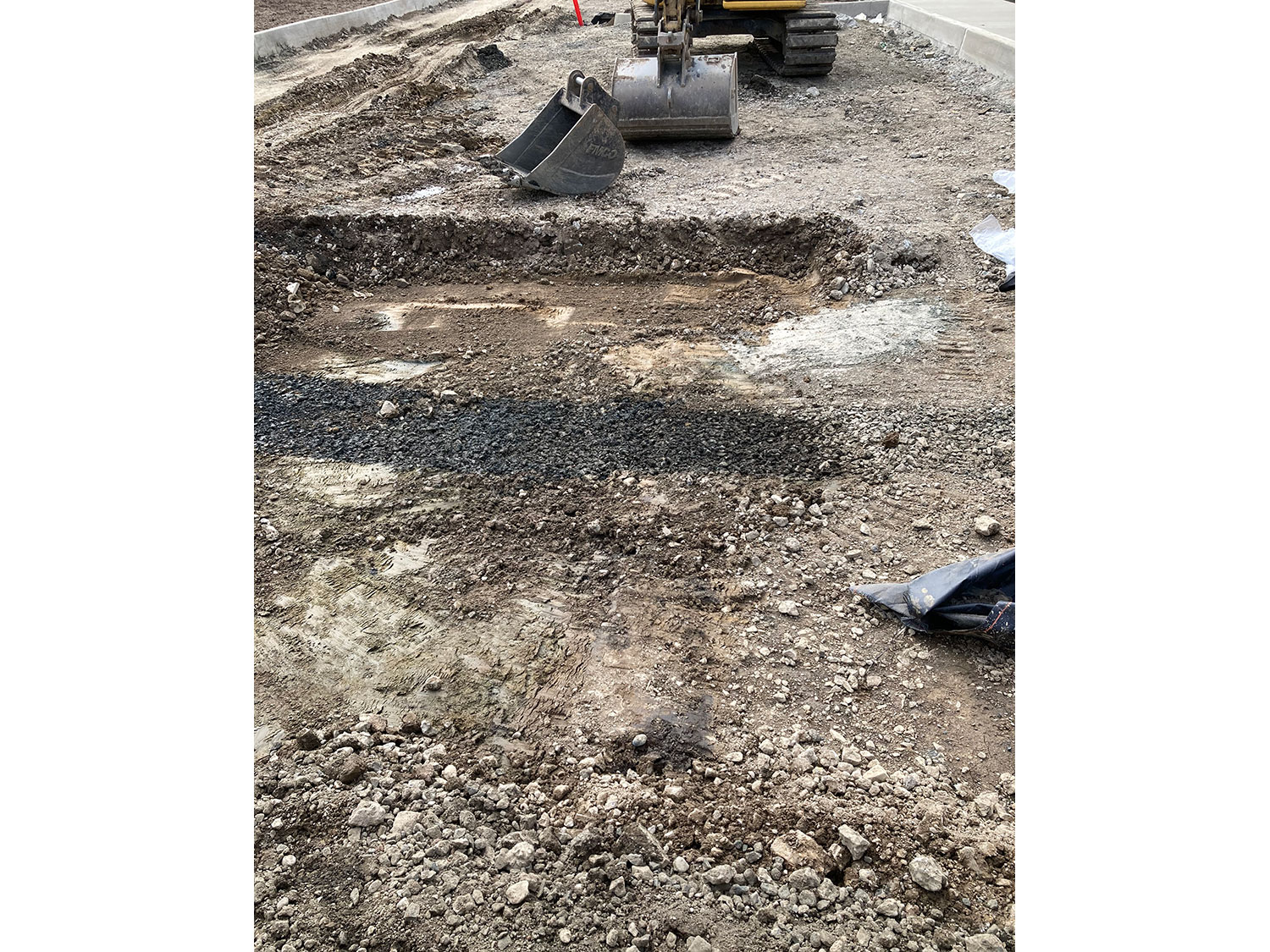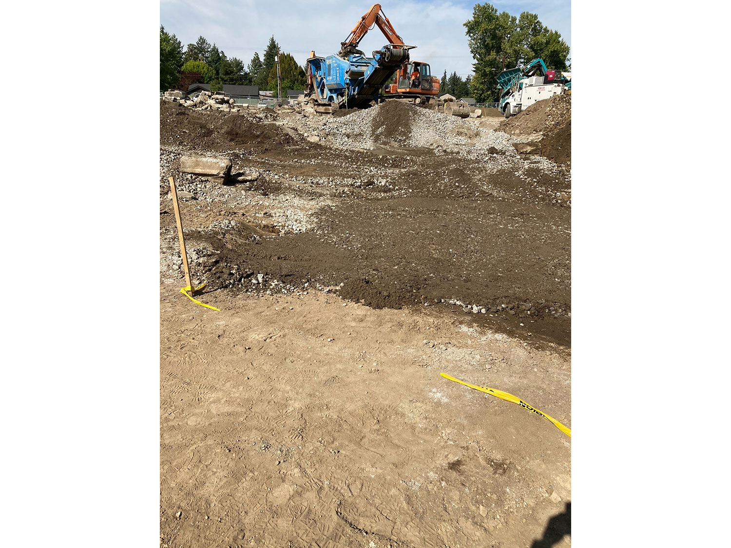 - A large amount of waste concrete had been left at the site by the previous owner. With the help of our project partners, the concrete was crushed, recycled, and turned into structural fill. The newly recycled concrete was then placed and compacted at locations where the unsuitable bearing material was removed.