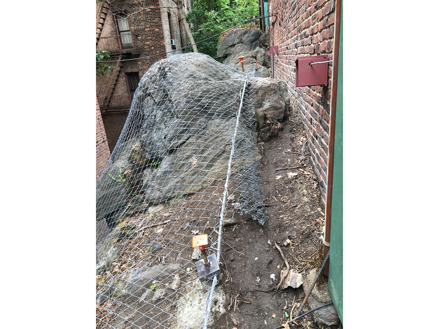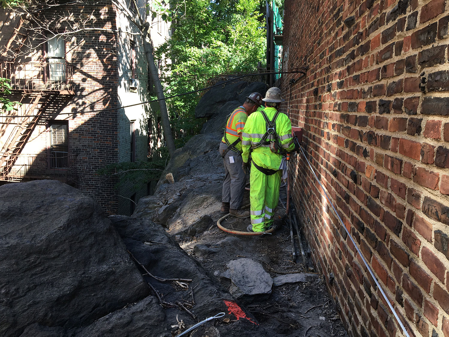 - Test borings and borehole logging indicated that some rock fractures were dipping towards the rock face and adjacent properties thereby creating a hazard to tenants and structures.